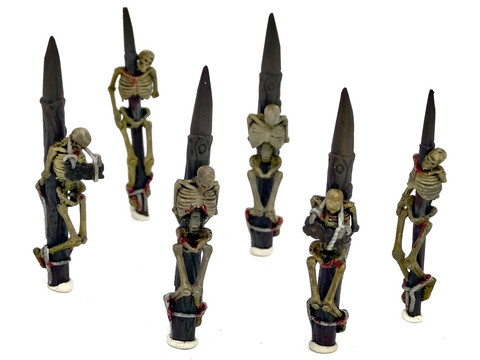 Impaled skeletons resin miniatures form Mystic Pigeon Gaming make great add-ons to your undead graveyard, or dark castle, keep/village.